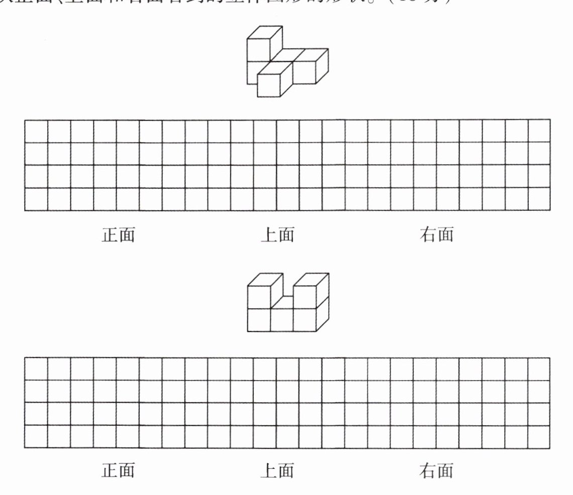 1. 分别画出从正面、上面和右面看到的立体图形的形状。(18分)