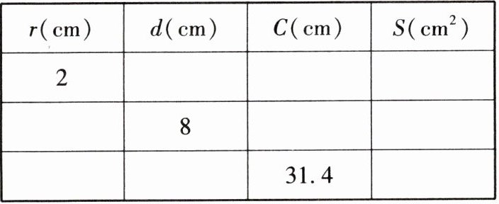 | $r(cm)$ | $d(cm)$ | $C(cm)$ | $S(cm^{2})$ |