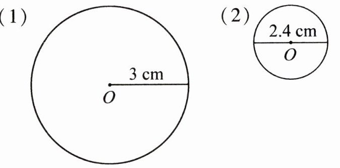 (1) 一个圆的直径是 $2.6$ dm,它的周长是 ( ) dm,面积是 ( ) $dm^{2}$。