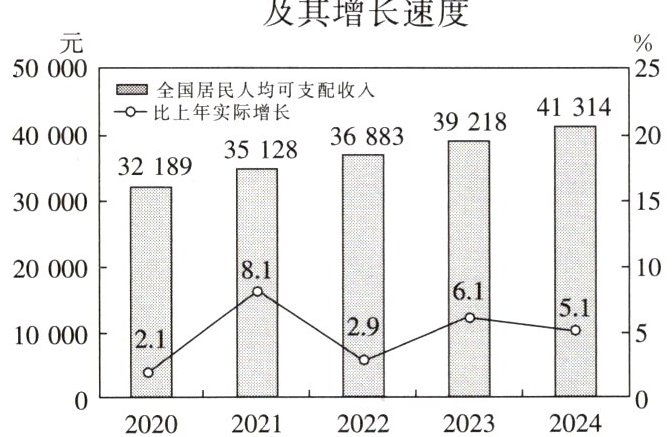 |图2 2020—2024年全国居民人均可支配收入及其增长速度|