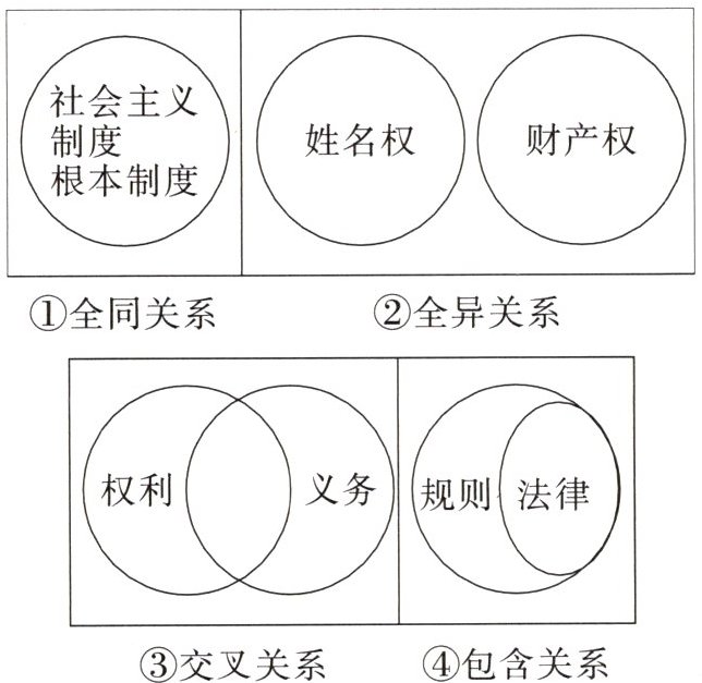 【认识国家利益】厘清概念之间的关系,是学好道德与法治学科的一个重要学习方法。两个概念之间的关系通常有以下四种:
