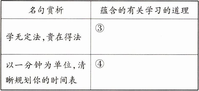 (2)例答:学会自主、合作、探究式的学习方式;做好课堂笔记;做好课前准备;注意预习、复习;注意归纳总结;合理安排时间;等等。