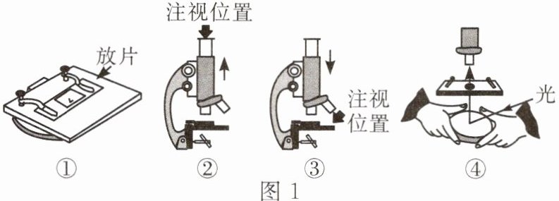 (2)小科按照正确的方法完成临时装片的制作后,接下来他想利用显微镜进行观察。图1是使用显微镜的几个操作步骤,正确的操作顺序为______(填序号)。