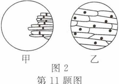 11. 小科在实验室进行“制作洋葱鳞片叶内表皮细胞临时装片并用显微镜观察”的实验。