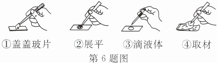 6.(基本操作)如图是制作洋葱鳞片叶内表皮细胞临时装片的几个步骤,请回答下列问题。