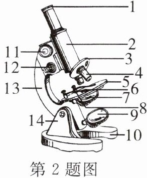 2.(基本操作)显微镜是生物实验中常用的观察用具,如图为光学显微镜,请据图回答问题。