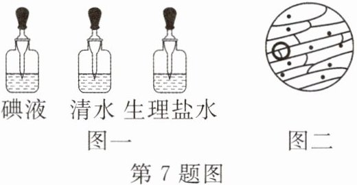 7.(装片观察)图一为部分实验器材,图二为显微镜下观察到的视野图像,请据图回答问题。
