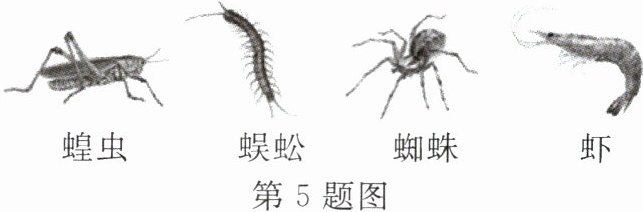 5. 如图是常见的几种节肢动物,完成填空。