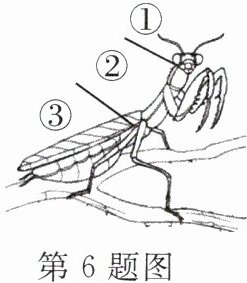 6. 如图是螳螂外部形态示意图,请据图回答下列问题。