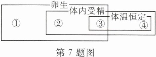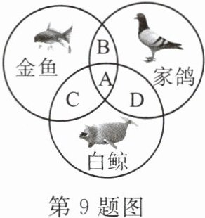 9.我国是世界上野生动物种类最丰富的国家之一,动物种类约占世界总数的10%左右,不同种类的动物在形态结构、生活习性等方面均表现出对各种环境的适应。如图是三种动物特征比较的示意图,交叉部分为它们的共同特征。请据图回答下列问题。