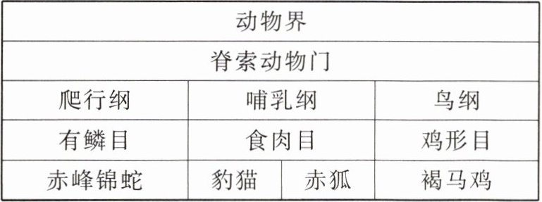 (1)表中缺少的分类等级是 ______,其中亲缘关系最近的两种动物是 ______。