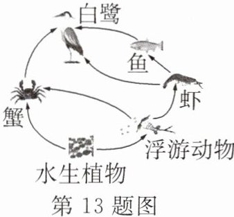 13. 截至 2023 年 6 月,我国共 82 处湿地列入《国际重要湿地名录》。如图表示某湿地生态系统中部分生物形成的食物网简图。