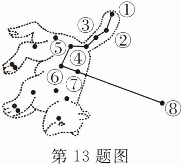 13. 如图的星座是大熊座,①~⑦是______,⑧是______。