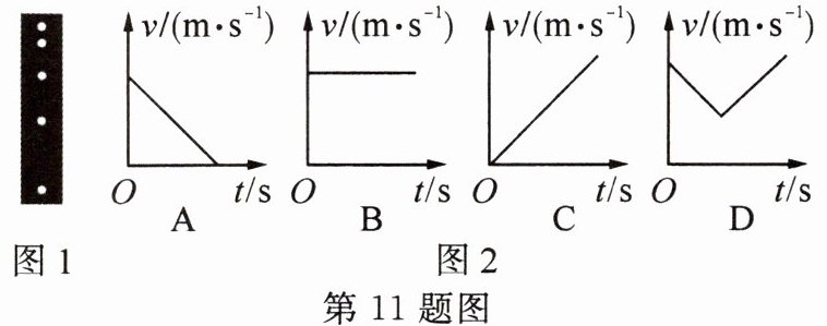 11. 为了探究小球自由下落时的运动,某校科学实验小组的同学用照相机每隔相等的时间自动拍照一次,拍下小球下落时的运动状态,如图 1 所示。