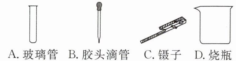 11. 只要我们平时积极动脑,就会发现生活中的很多物品可以代替某些实验仪器。筷子可以用于夹取块状药品,能代替______;注射器可以滴加少量液体,能代替______;吸管可以连通装置,可以代替______。(均填实验仪器名称)
