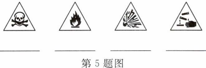 5. 如图是实验室常见的一些危险警告标志,请在横线上写出各标志的含义。