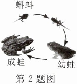 2. 如图是蝌蚪变成青蛙的过程,主要体现了生物特征中的 …………( )
