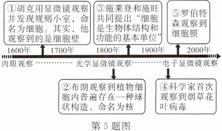 5. 科学家们对生物体结构的认识伴随显微镜的发明和改进而不断深入。根据材料回答问题。