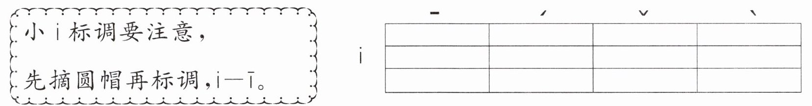 小i标调要注意,先摘圆帽再标调,i—ī。