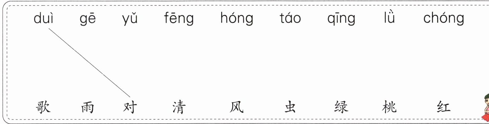 duì—对 gē—歌 yǔ—雨 fēng—风 hóng—红 táo—桃 qīng—清 lǜ—绿 chóng—虫