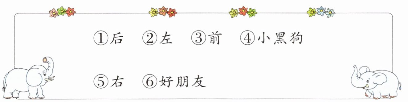 ①后 ②左 ③前 ④小黑狗 ⑤右 ⑥好朋友
