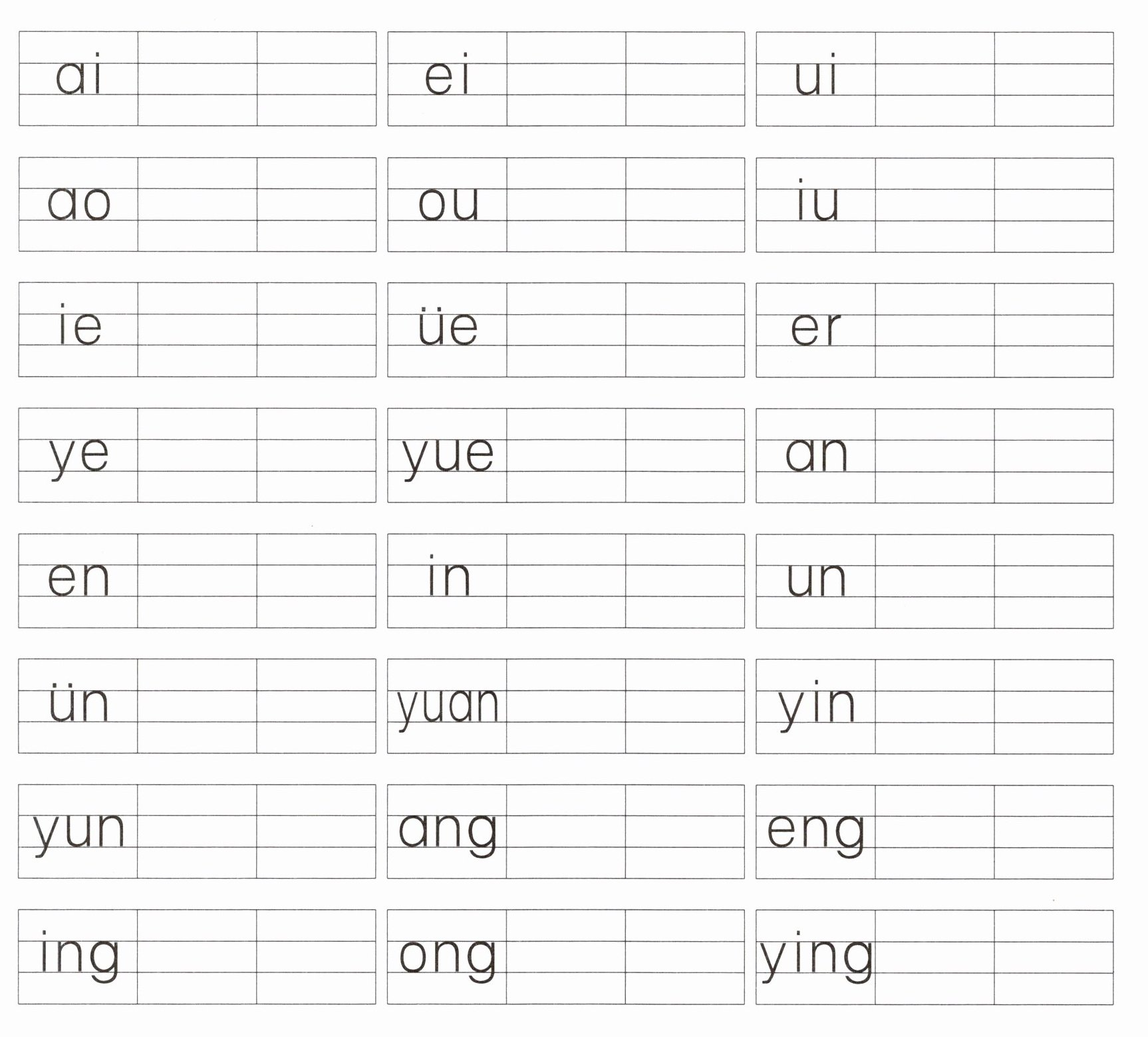 本题考查的是汉语拼音的书写,题目给出了汉语拼音字母,要求正确书写在四线三格中,需要知道每个字母在四线三格中的正确位置,尤其是声调的位置。