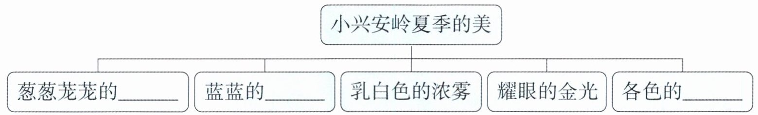 (1)小兴安岭夏季的美体现在哪些方面?填一填。