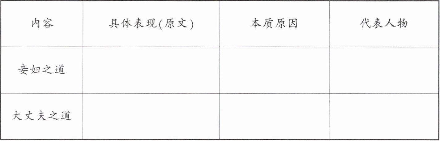 | 妾妇之道 | 以顺为正者 | 无独立人格,顺从外在标准 | 公孙衍、张仪 |