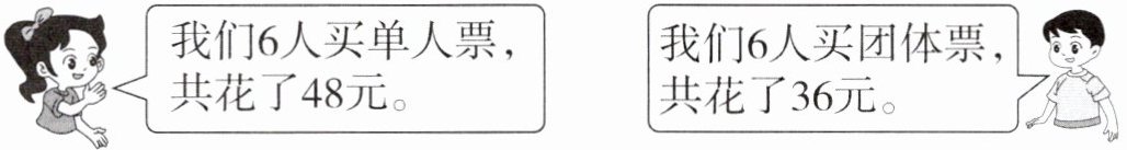 团体票总价是$36$元,数量同样是$6$张,同理可得团体票每张的价格为$36÷6 = 6$(元)。