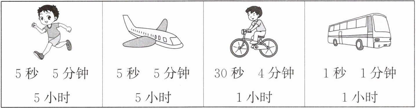 答案:第一列圈5分钟;第二列圈5秒;第三列圈4分钟;第四列圈1分钟。
