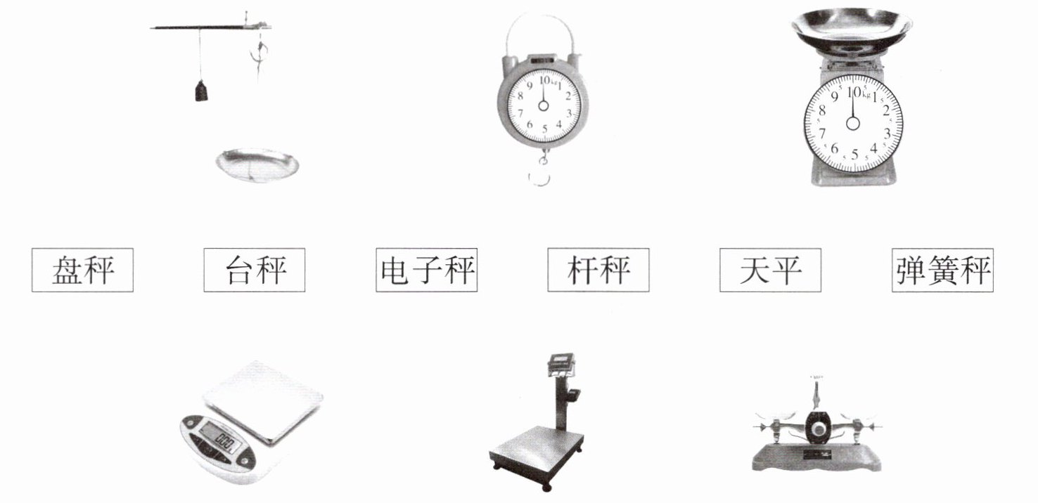 1. 你知道下面这些称重的工具吗?把图片和名称连一连。