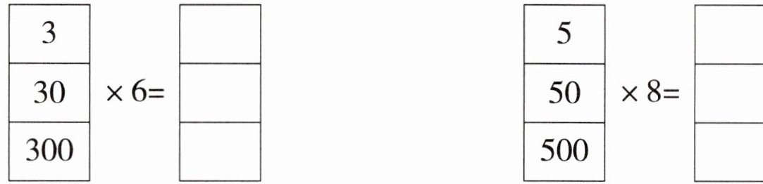 发现规律:一个因数不变,另一个因数扩大$10$倍、$100$倍,积也随着扩大$10$倍、$100$倍。