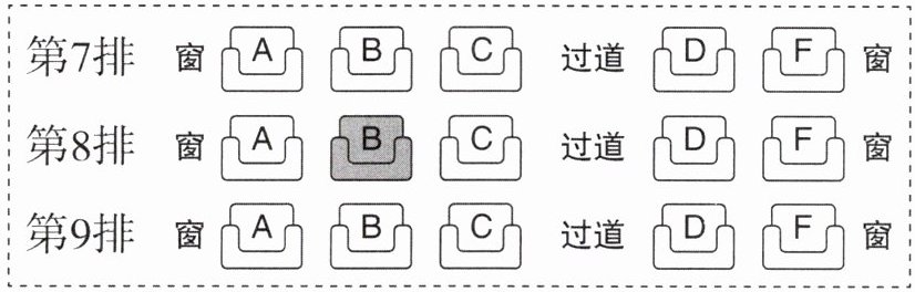 | 第8排 | 窗 | A | ▇B | C | 过道 | D | F | 窗 |