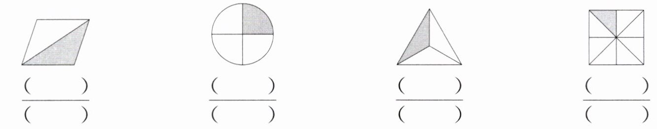 3.下面各图中的涂色部分是整个图形的几分之几?用分数表示出来。