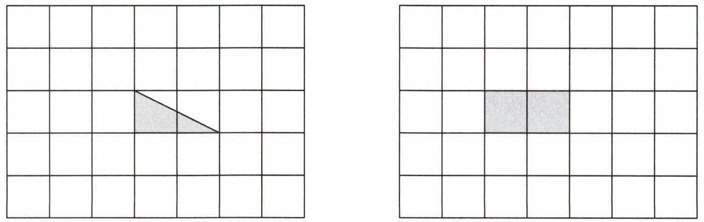 4. 阴影部分分别是一个图形的$\frac{1}{4}$,原来的图形可能是什么形状?请在方格中画出来。