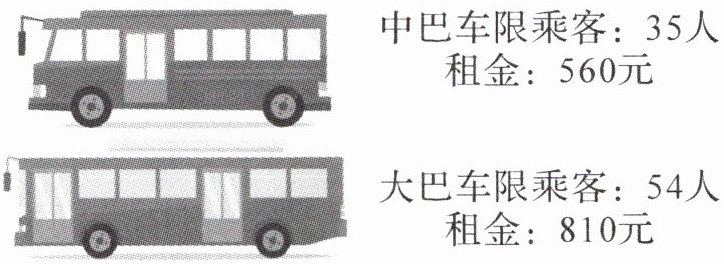 (2) 要计算只租大巴车需要付多少租金,首先要确定需要租几辆大巴车。由于210÷54=3余48,即3辆大巴车坐不下所有人,还需要再加一辆车,所以总共需要4辆大巴车。每辆大巴车的租金是810元,所以总租金是4×810=3240元。