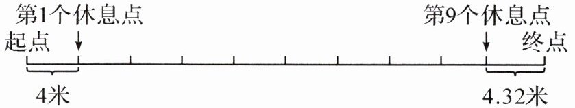 起点→第1个休息点(4米)→…→第9个休息点→终点(4.32米)
