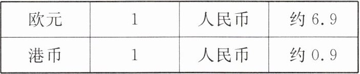 4. 某日,人民币和欧元、港币的汇率如下表所示。(单位:元)