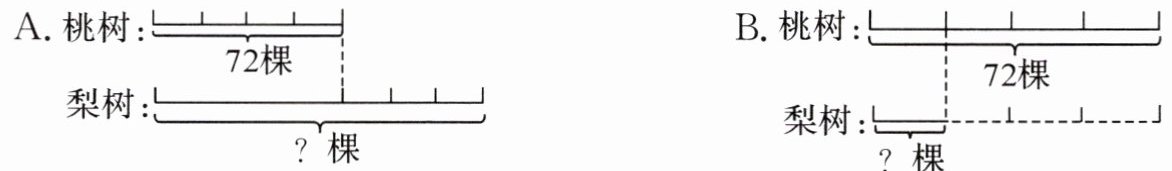桃树有$72$棵,从线段图来看,表示桃树棵数的线段长度应对应$72$棵,且表示梨树棵数的线段长度要比表示桃树棵数的线段长度长,长的部分是桃树棵数的$\frac{3}{4}$。