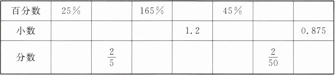 | 百分数 | 小数 | 分数 |