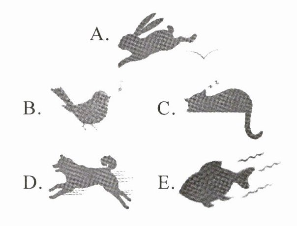 【解析】:这是一道英语谚语与其中文意思的连线题。题目要求我们将给出的关于动物的英文谚语与其对应的中文翻译正确连接起来。这需要我们理解每个英文谚语的含义,并找到与之匹配的中文表达。