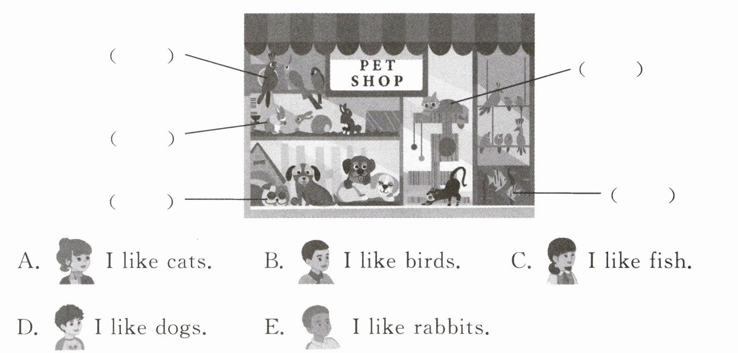 二、读句子,选择合适的动物图片,将序号填在横线上。