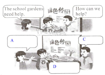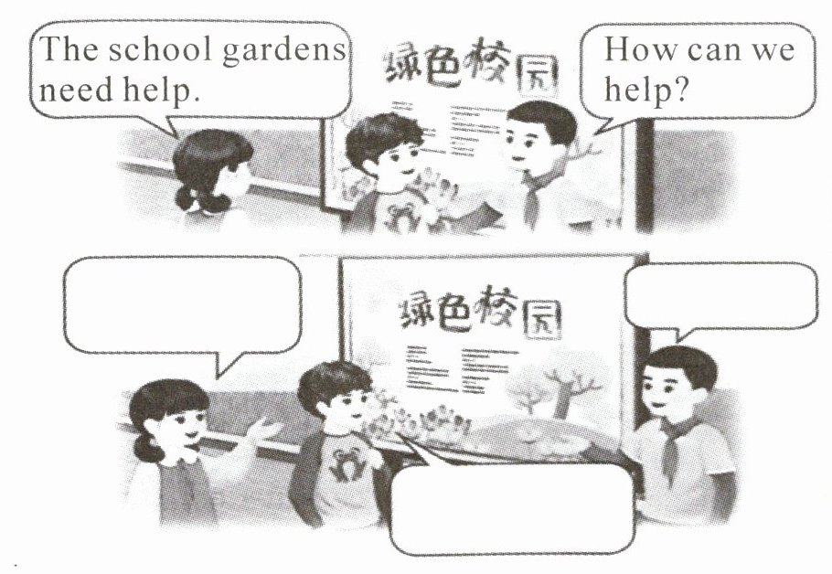 二、Chen Jie 的学校正在创建绿色校园,同学们能为学校做什么呢?把句子的序号填入对话框(有一项多余)。