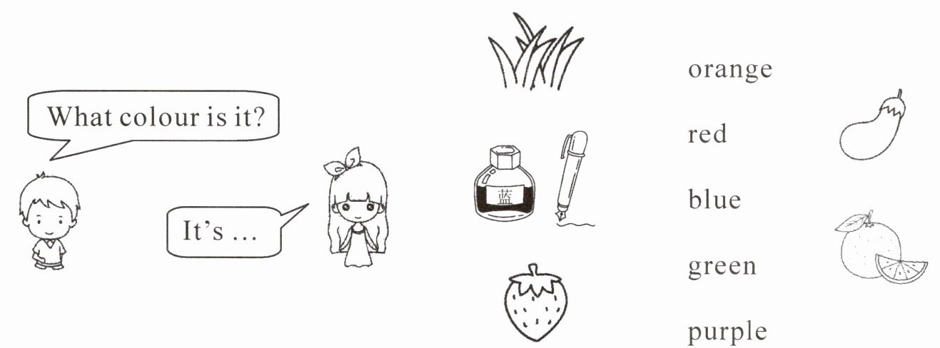 橙子(orange)的颜色是橙色(orange),表达为“What colour is it? It's orange.”。