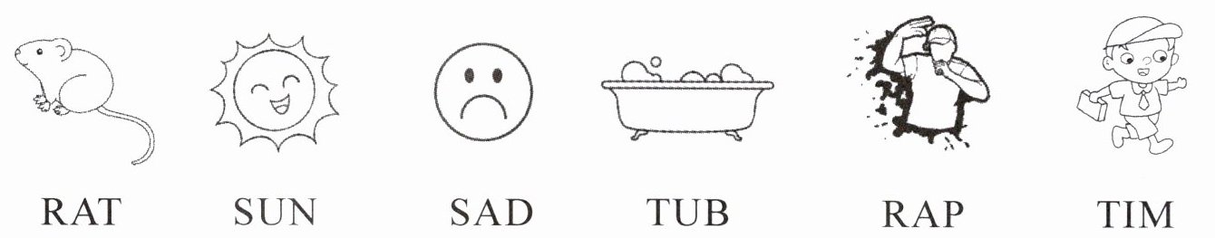 这是一道英语单词拼写题,考查学生对常见英语单词的掌握以及根据图片提示补充单词的能力。解题的关键在于观察图片内容,结合所给的字母部分,联想出完整的单词。