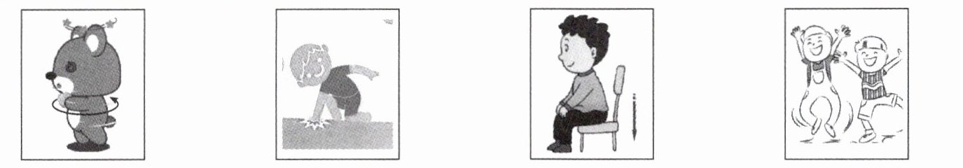 Sit down. Turn around. Touch the ground. Jump up and down.