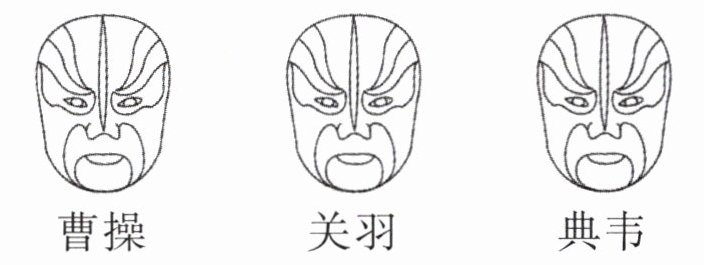 典韦:典韦勇猛善战,性格暴躁,根据“黄脸代表勇猛暴躁”,可知典韦的脸谱颜色是黄色。