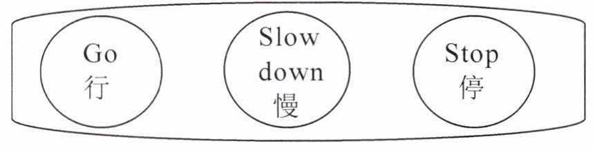 【解析】:本题可根据交通信号灯的常识以及所给英文单词的含义来确定对应的颜色。在日常生活中,绿灯表示通行,英文是“Go”;黄灯表示减速慢行,英文是“Slow down”;红灯表示停止,英文是“Stop”。再结合题目中所给的序号及颜色英文单词,①“red”是红色,对应红灯;②“green”是绿色,对应绿灯;③“yellow”是黄色,对应黄灯。
