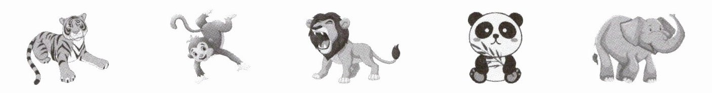 【解析】:题目要求根据英文描述,用阿拉伯数字写出每种动物的数量。英文描述中提到了lions(狮子)、monkeys(猴子)、tigers(老虎)、elephant(大象)、pandas(熊猫),并给出了它们各自的数量。我们需要将这些数量用阿拉伯数字写出来。