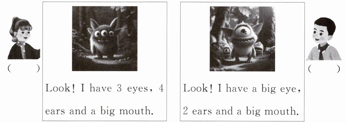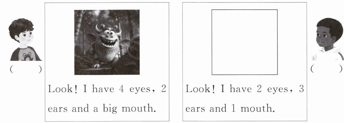 小伙伴们在介绍自己画的小怪兽,读一读,完成相关练习。